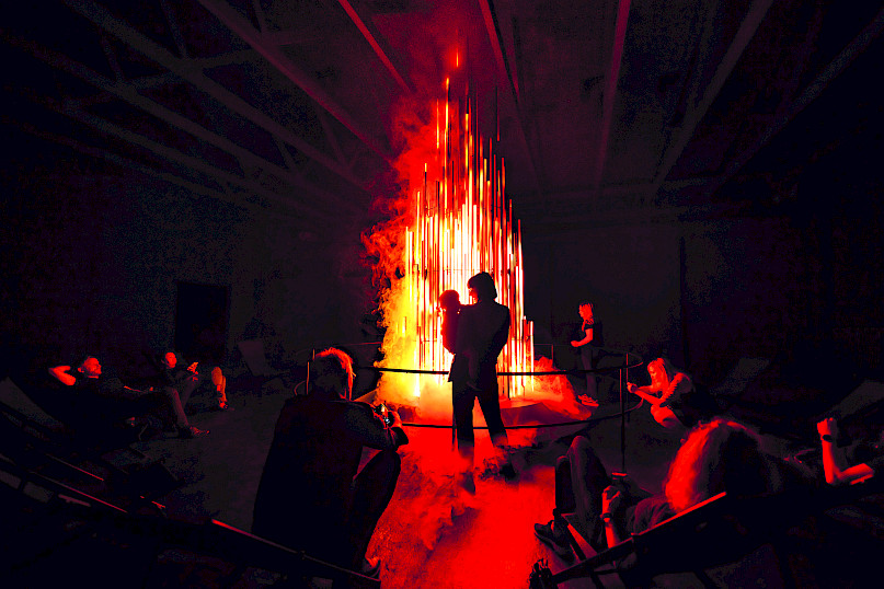 Qaranlıq gündüz saatlarında güvəndiyiniz bütün adi hissləri sizdən alır. Qaranlıqda hər şey minimuma enir — və məhz o zaman mən sizə yeni bir enerji verə bilirəm. DARK MATTER-ə daxil olanda tamam başqa bir dünyaya keçirsiniz; instalyasiyaların ritminə uyğunlaşmağa vaxt ayırsanız, meditativ bir hala düşə bilərsiniz. Fikir də elə budur.